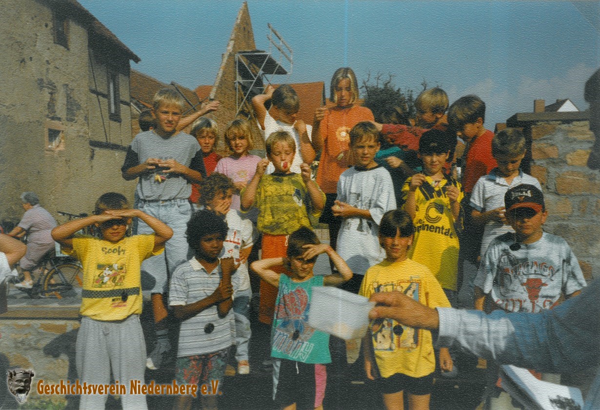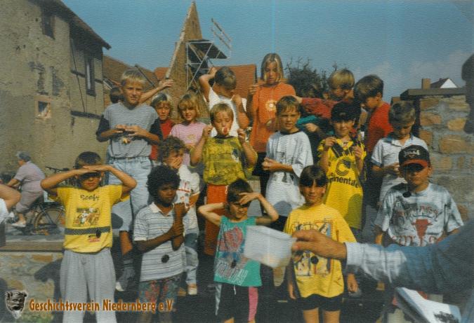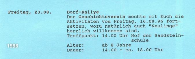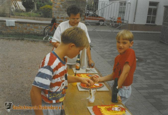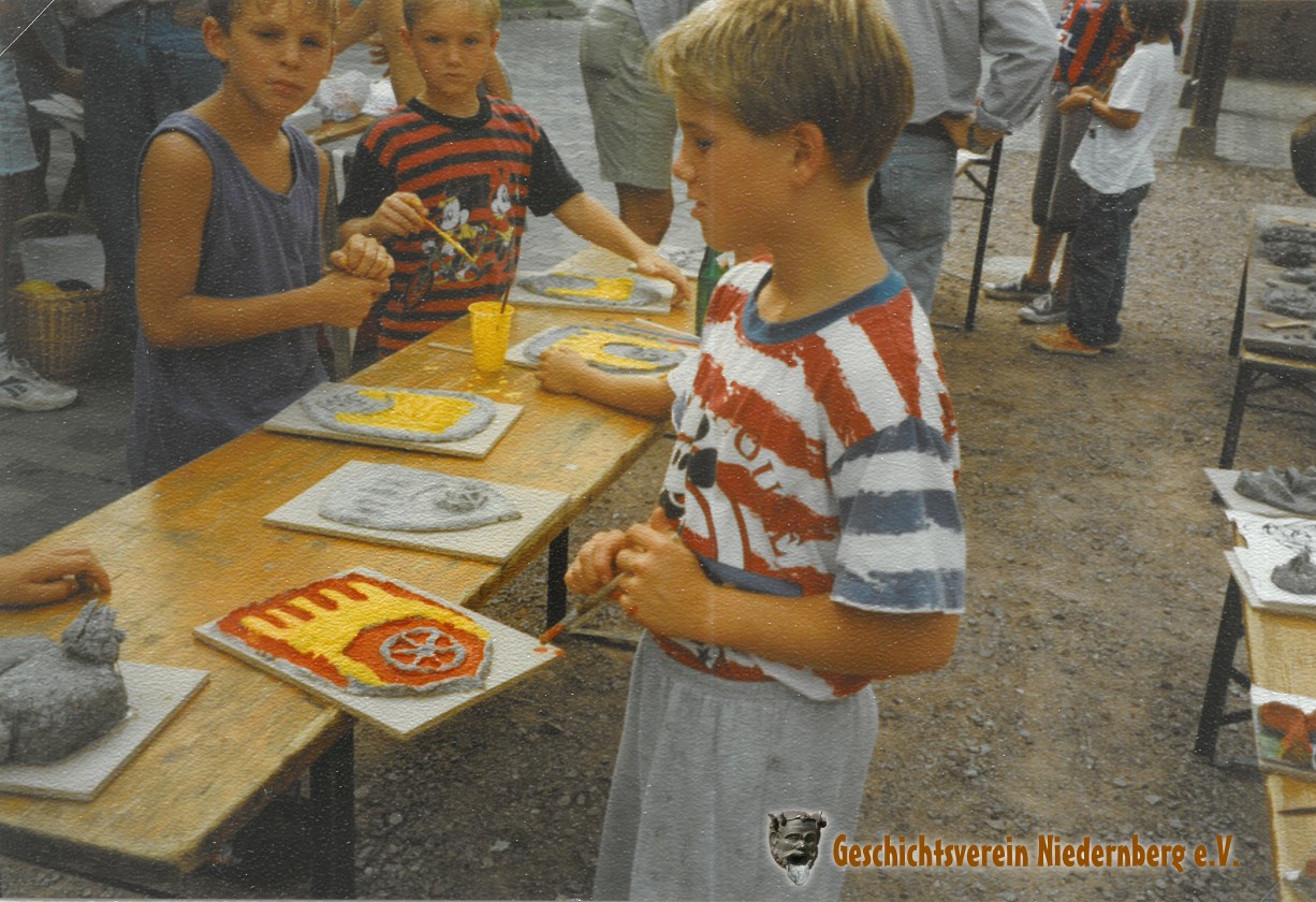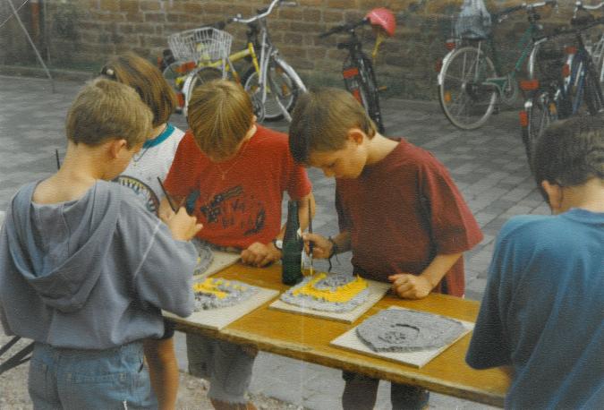 Ferienspiele 1996: Dorf-Rallye und Basteln des Niedernberger Wappens und u.v.m. mit Pappmaché