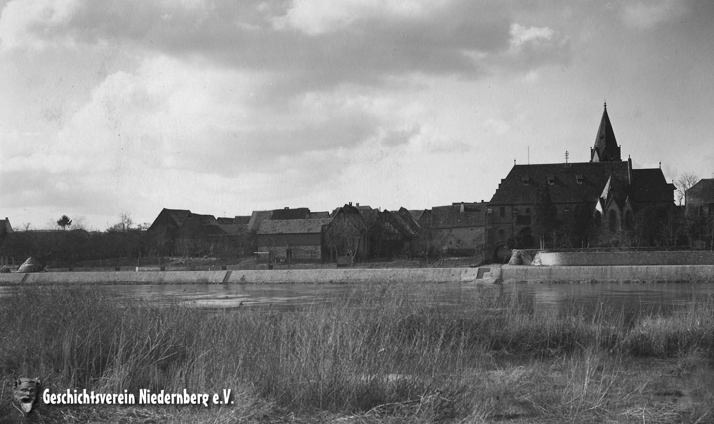 (Heimatbuch 1, S. 287) Fotos links um 1900, Foto rechts 1920er Jahre, nach Aufstockung und Pflasterung des UferwegesWas war vor 190 Jahren?