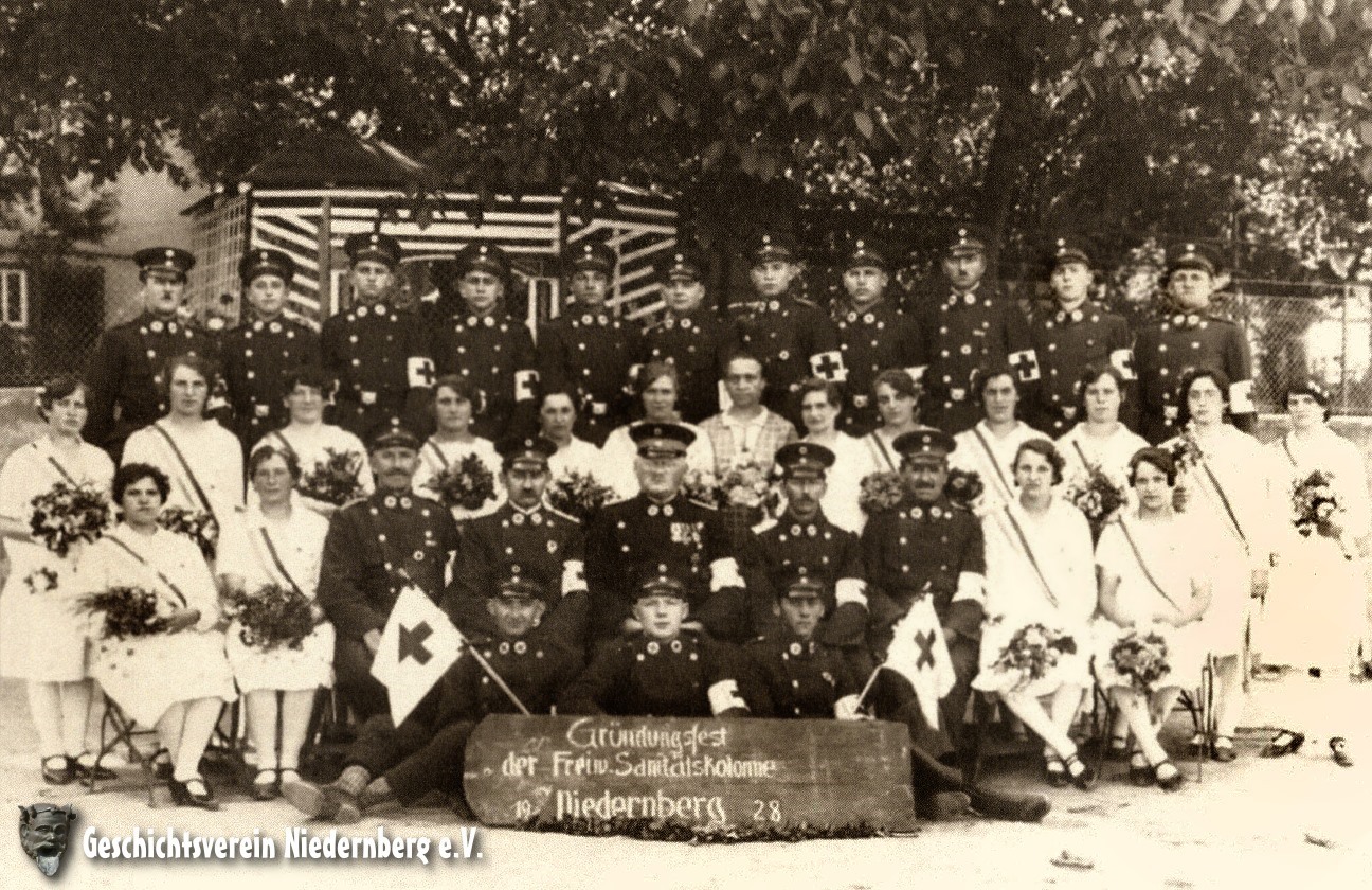 Im September 1927 wurde durch die Initiative des damaligen Arztes Dr. Grod aus Sulzbach (in Niedernberg gab es noch keinen Arzt) die Freiwillige Sanitätskolonne Niedernberg gegründet. Das Gründungsfest fand am 30. Juni 1928 statt, die Fahnenweihe im Juni 1958.