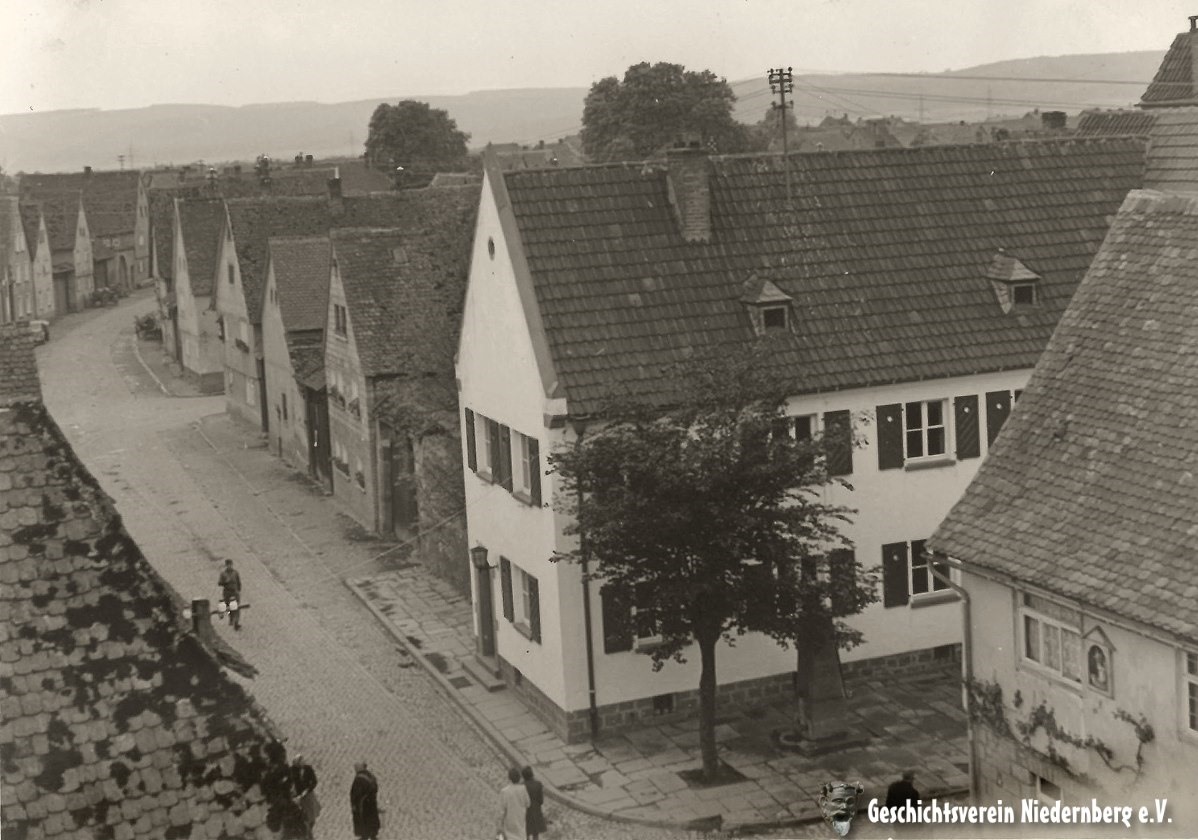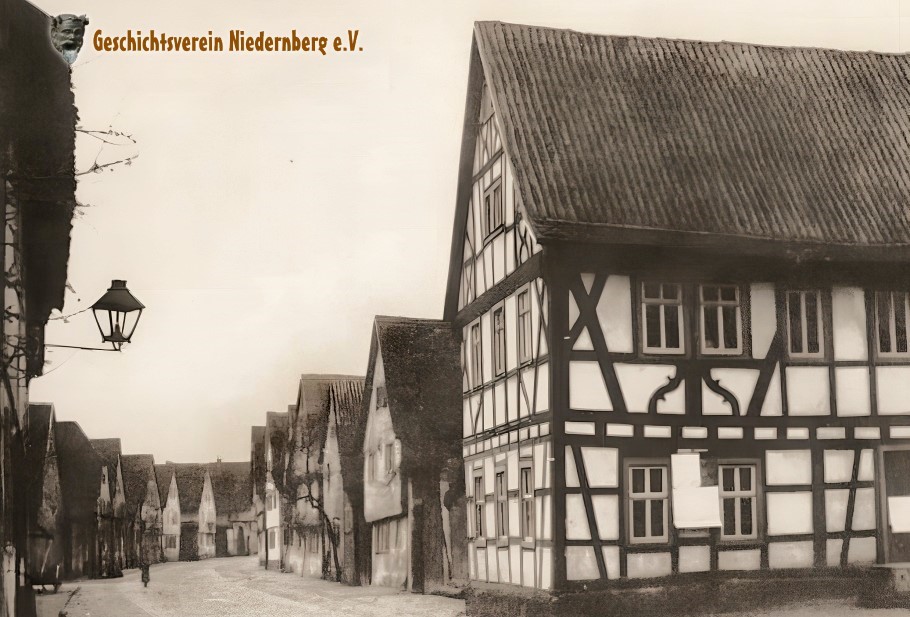 1953 wurde in Niedernberg eine neue straßenbezogene Hausnummernverteilung eingeführt, d.h. jede Straße bekam ihren eigenen Nummernkreis. Zuvor galt ein Nummernkreis für das ganze Dorf, beginnend in der Turmgasse und fortlaufend durch die Hauptstraße mit ihren Seitengassen. Kamen neue Häuser hinzu, wurde der Nummernkreis mit Bruchzahlen oder Buchstaben erweitert. In der Fachrainstraße reichten die Hausnummern so bis zu 78 1/30. Bis zu Beginn des 19. Jh. war die Nummerierung von Gebäuden auf dem Lande weitgehend unüblich. In Niedernberg folgte man 1806 der allgemeinen Verordnung zur Einführung der Hausnummern.