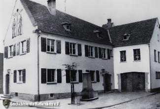 Im Herbst 1937 wurde das alte Rathaus abgerissen. Es war ein Fachwerkbau, der vermutlich im 16. Jh. errichtet wurde. Diesem Bau ging ein früheres gemeindliches Bauwerk voraus, ein sogenanntes Spielhaus, in dem man sich zu geselligen Treffen versammelte. Bereits 1426 ist hier ein solches Spielhaus urkundlich erwähnt. Der Abbruch des Fachwerkhauses erfolgte wegen Erweiterungsbedarf und Baufälligkeit. An gleicher Stelle wurde ein damals zeitgemäßer Neubau errichtet. Der damalige Neubau wurde inzwischen erweitert und modernisiert. Das Rathaus hebt sich durch seine aus der westlichen Häuserzeile hervortretende Platzierung von den übrigen Gebäuden ab.