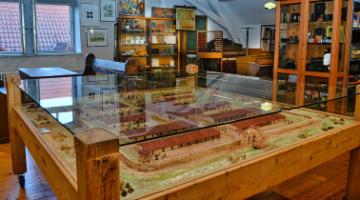 Verschiedene Ausstellungsstücke, wie z.B. ein Adventskranz, Adventskalender, eine Krippe und Weihnachtsschmuck, sowie ein erklärender Text, soll an die Weihnachtskultur der Nachkriegszeit bis etwa in die 70er Jahre erinnern.