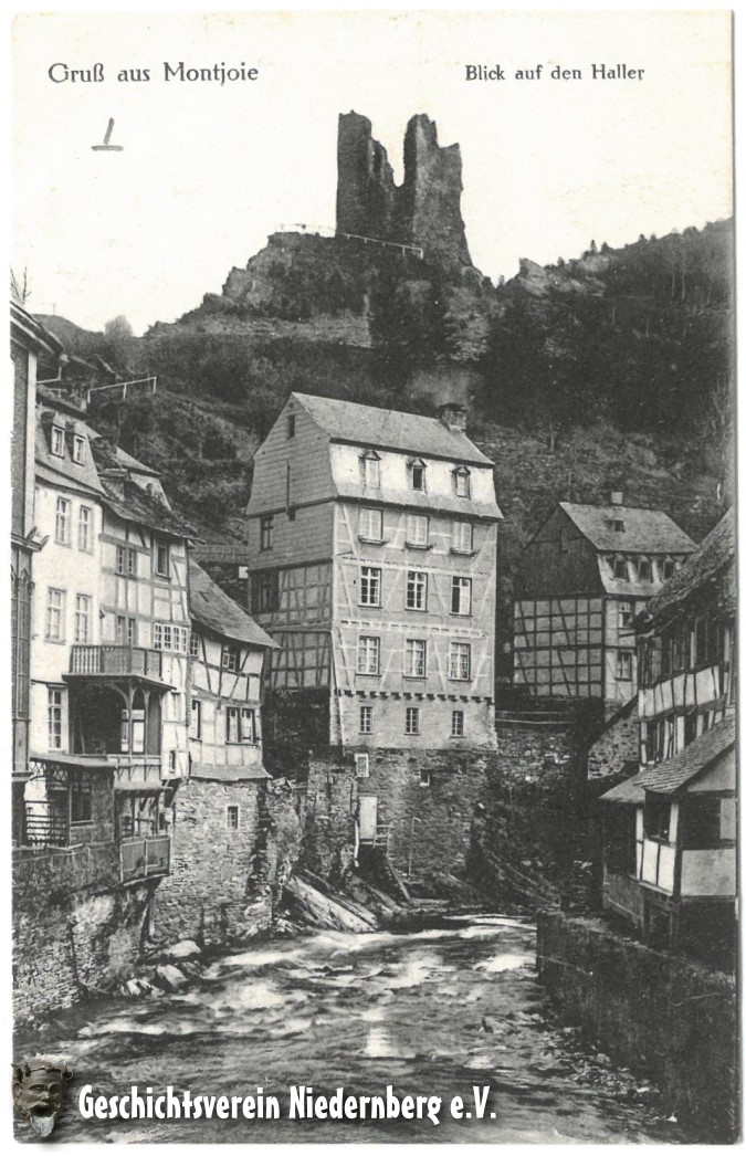 Monschau thront mit ihren Türmen über der Stadt an der Rur, in dessen Nähe sich der Nationalpark Eifel mit