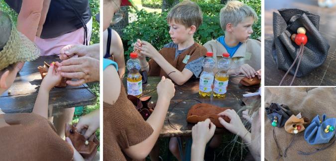Die meisten Kinder nahmen die Gelegenheit wahr, sich passend zur Tunika einen kleinen Lederbeutel zu basteln. Zwei passende Repro-Römermünzen gabs noch obendrein mit dazu.