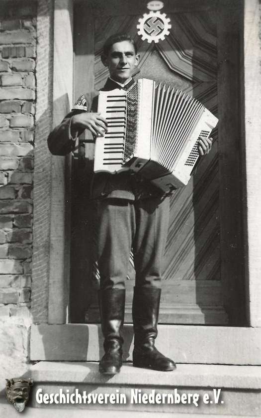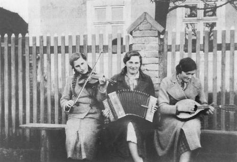 Dorfmusikantinnen aus dem Sudetenland und ein Schifferklavierspiler in Niedernberg