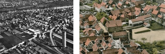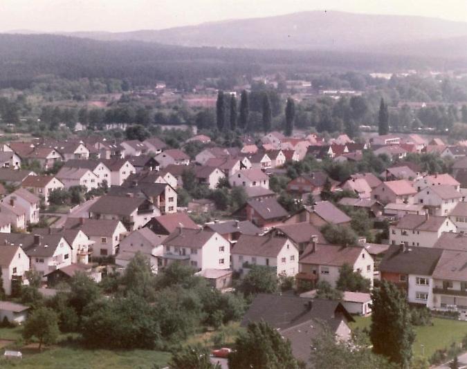 Blick vom Wasserturm Richtung Sulzbach und Ringstraße (ca. 1990)