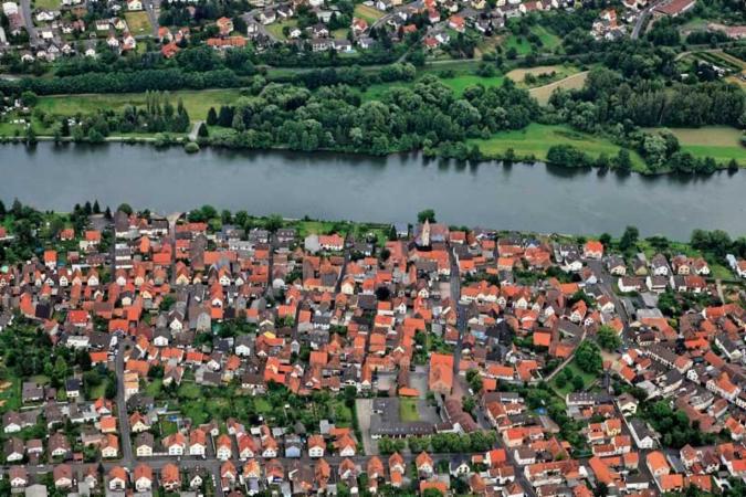 Großostheimer Straße, vom Wasserturm aus fotografiert. Ca. 1994/95