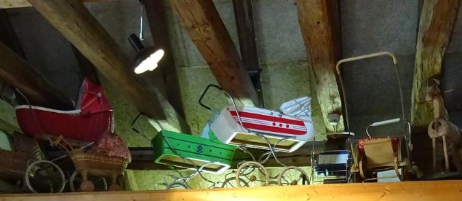 Altes Schulzimmer und Kinderspielzeug, Kinderwägen, Technik etc.