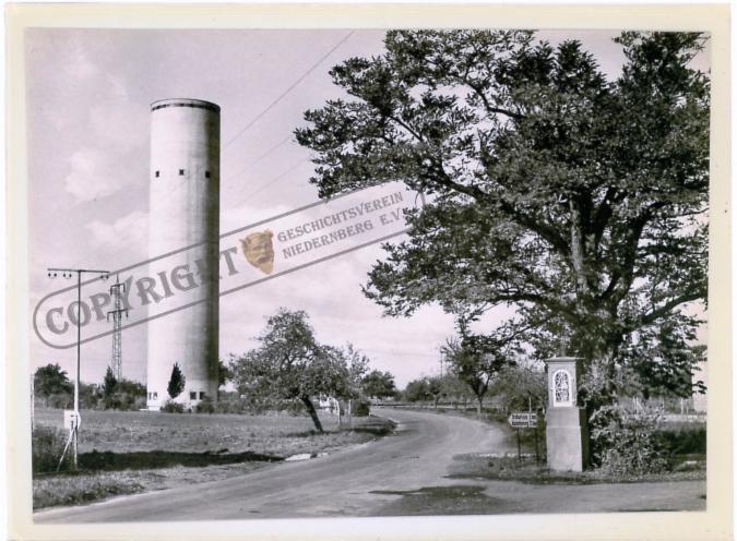 AK mit Flugzeugaufnahme Anfang der 60er, kurz nach dem Bau des Wasserturmes