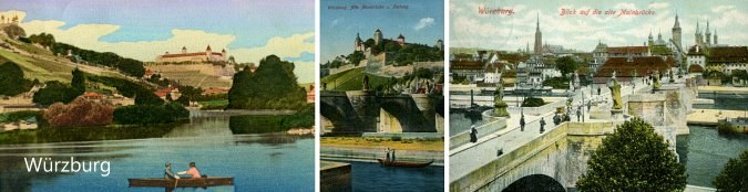 Zu den Ansichtskarten von Miltenberg, Aschaffenburg und Würzburg geht's per Mausklick auf die jeweilige Bildervorschau:
