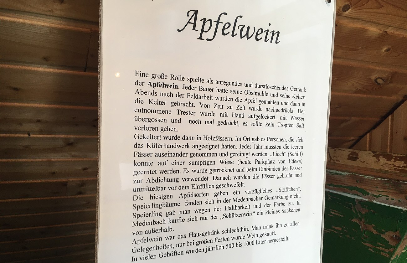 Heimatmuseum des Heimatverein Medenbach und Kelterei-Musem in der Hofreite Engel (siehe Bild)