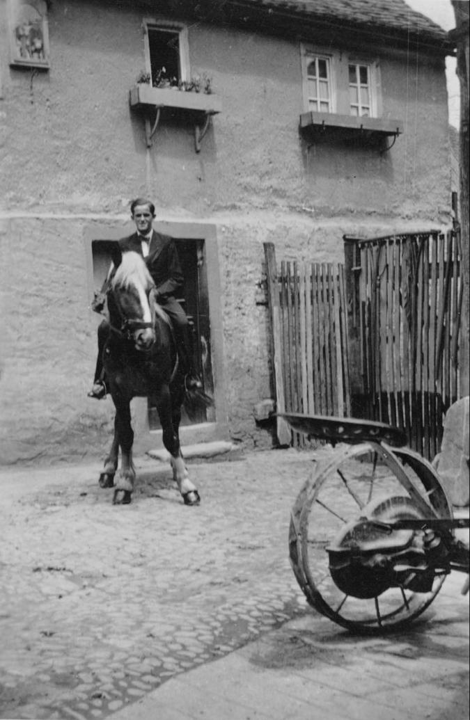 Karl Klement (Darlehensrechner) vor dem damaligen Wohnhaus in der