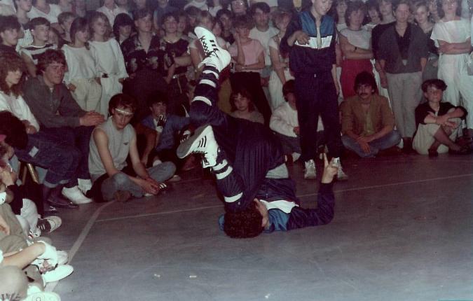 Nur Siegerteams der großen Breakdance-Wettbewerbe in Diskotheken wie Alladins, Gloris, Lobo, Gracy Horse usw. durften in Niedernberg antreten. Sieger vor 500 begeisterten Fans wurde die "Electric Doll's Fantastic Crew" aus Erbach im Odw.