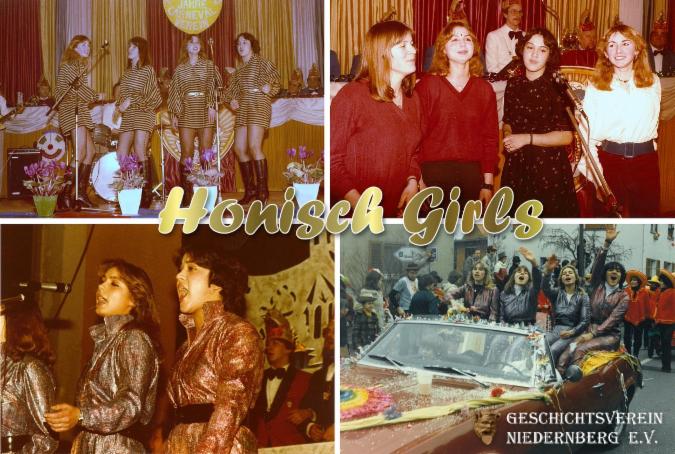 Die vier "Honischgirls" Doris Klug, Christine Hein, Susanne Lebert und Sigrid Fischer waren in den 70ern bis Anfang der 8oer in den Niedernberger Faschinszeiten aktiv und damals auch immer wieder in den regionalen Medien präsent.