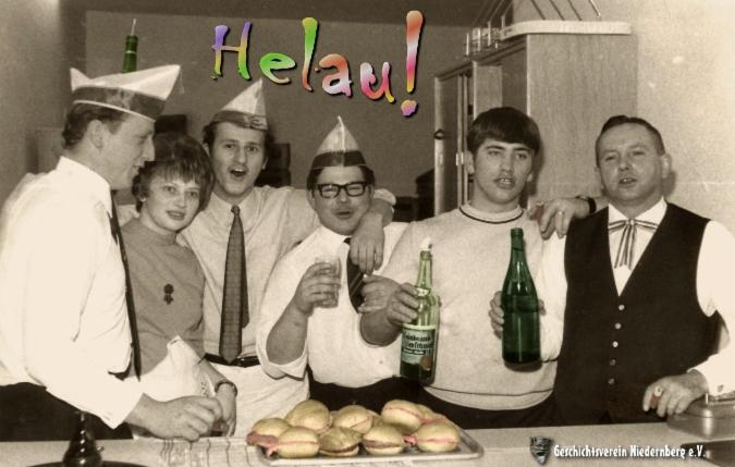 Mit unserem heutigen Highlight-Foto (Theken-Crew Schulturnhalle um 1968) stoßen wir auf die Faschings-Kampagne 2022/23 an, die am 11.11.22 um 11:11 Uhr eingeläutet wurde. Nach 33 Monaten „Corona-Zwangspause“ verwöhnt der Niedernberger Carnevalsverein „NCV“ die unter Entzug stehende Honischer Narrenschar wieder mit Faschingssitzungen und -Bällen, Kappenabenden, Umzügen u.v.m. Es darf endlich wieder gemeinsam geschunkelt, gelacht und das Prinzenpaar mit Pauken und Trompeten feuchtfröhlich geweckt werden. Büttenreden, Schunkler und Raketen sowie Gardetänze und amüsante Auftritte verzaubern wieder das närrische Volk, durch die Straßen hallen wieder heitere Helau-Rufe. Schön, dass damit ein weiteres Stück Normalität in unser Hnischland einzieht!