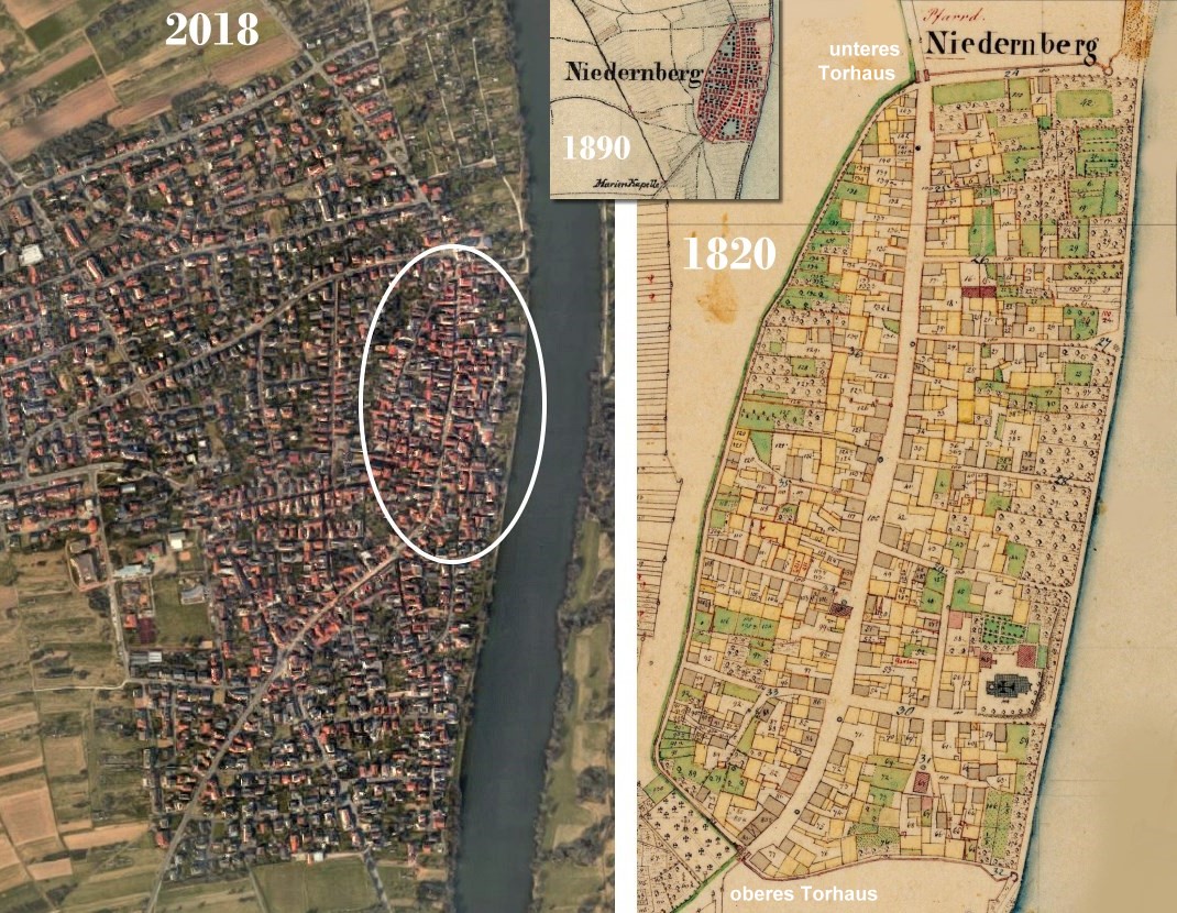 Gehöften bebaut gewesen sein. Das restliche Gelände diente als Gartenland und