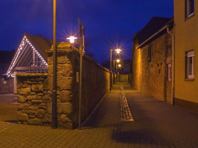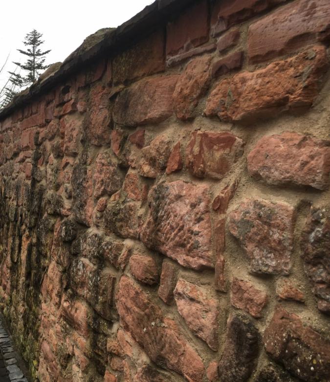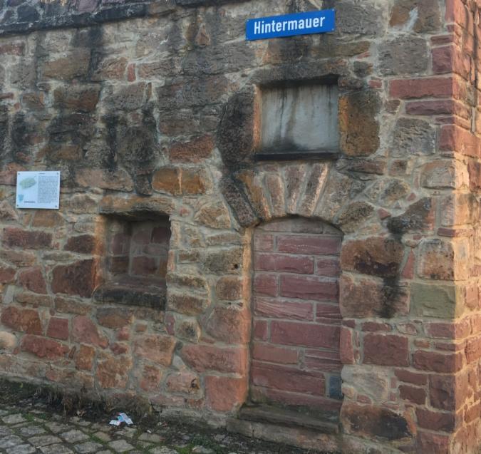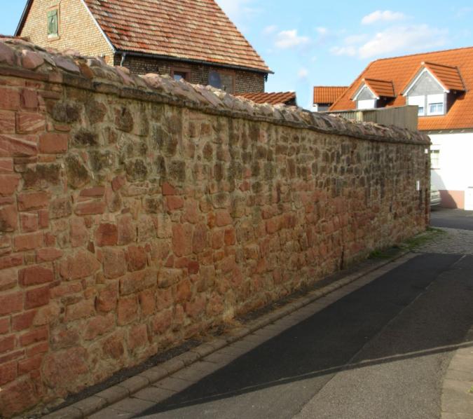 Teilstück der Dorfmauer: Hintermauer vom Dorfplatz / Hauptstraße nordwestlich Richtung Sandsteinschule / Schulstraße