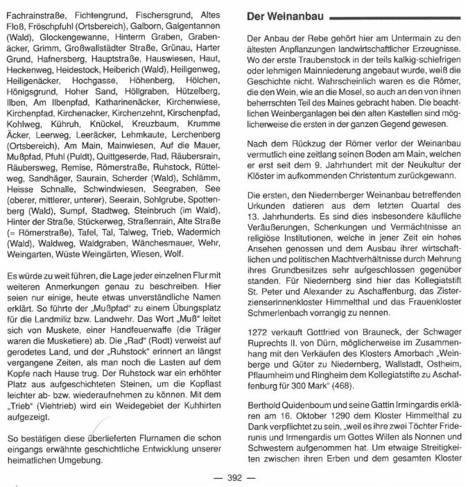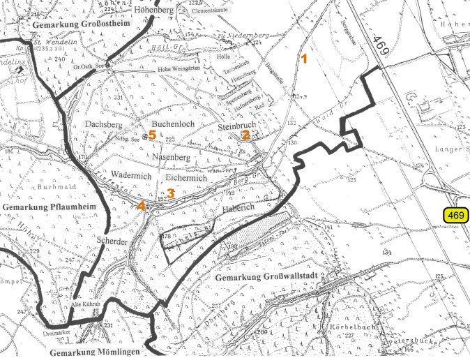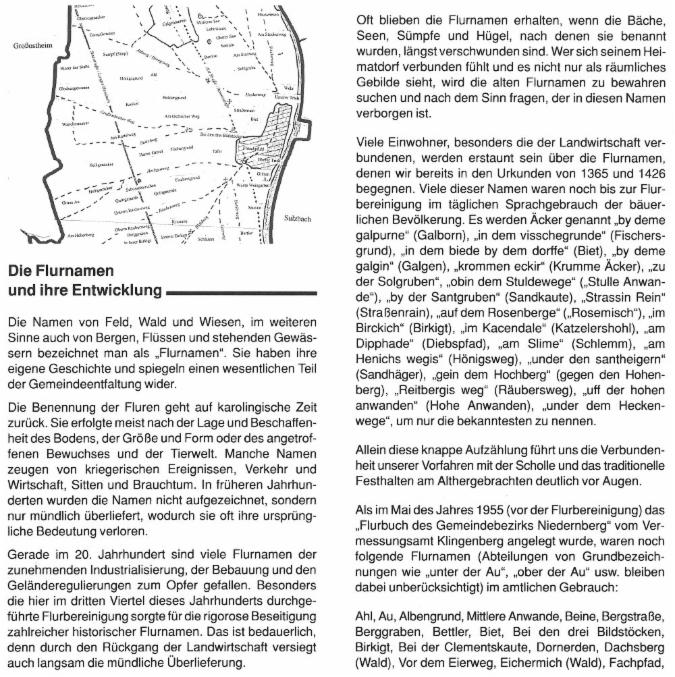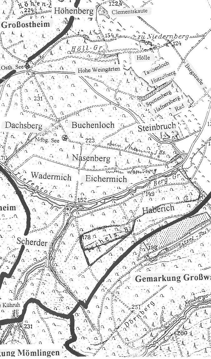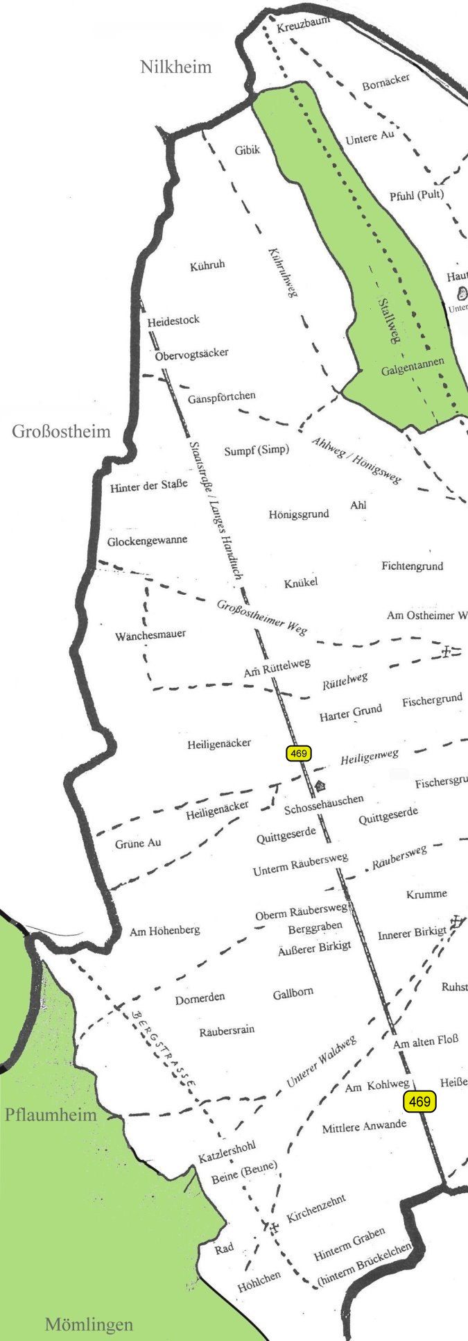 Alte Flurnamen im Ortsbereich, in Flur und Wald (Weinanbau siehe hier...)