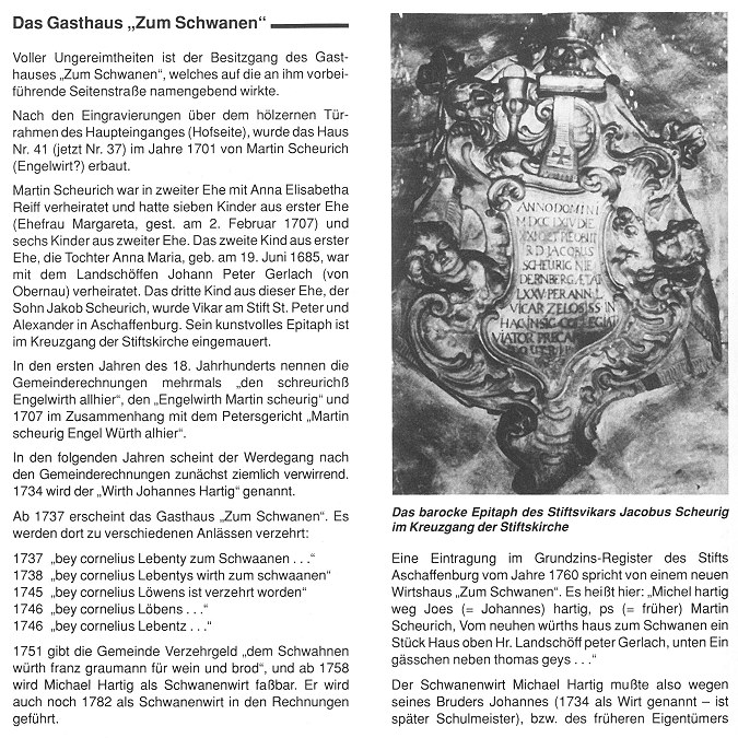 Von dem 1701 erbauten Gasthaus „Zum Schwanen“ in der Hauptstraße 37 hat die angrenzende Schwanengasse ihren Namen.