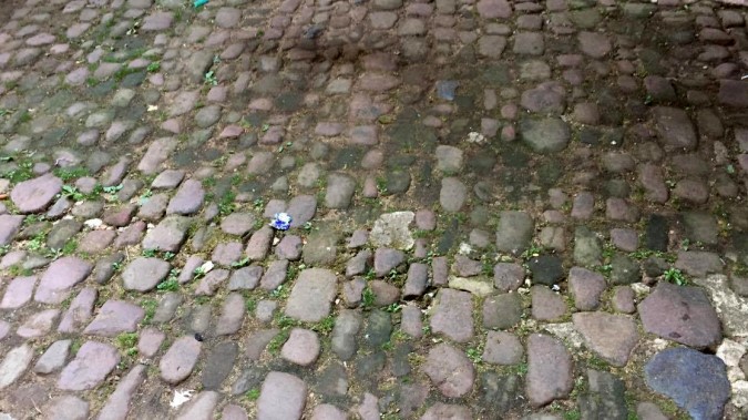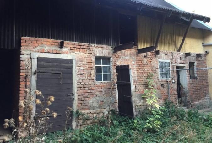 Stallungen im Hinterhof. Bild unten: Pflaster im teils überdachten Eingangsbereich des Hofes