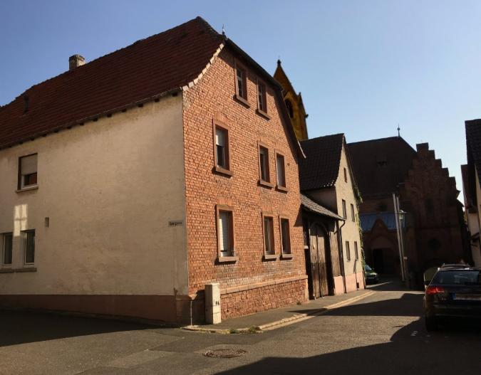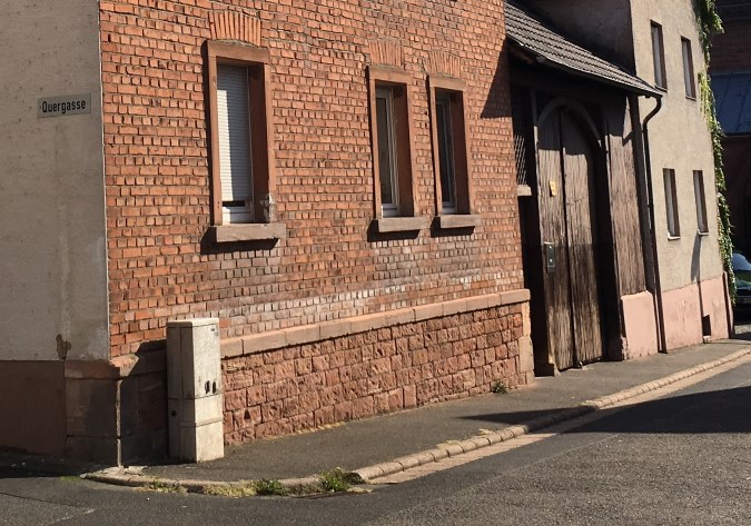 Der Eingang zur Gaststube ist hier nicht im Bild. Er befindet sich in eta auf Höhe des Fotografen, rechts. Über drei steinerne Stufen geht es ins Haus, links in einen kleinen Raum, der wiederum mit der ehemaligen großen Gaststube an der Straßenfront verbunden ist..