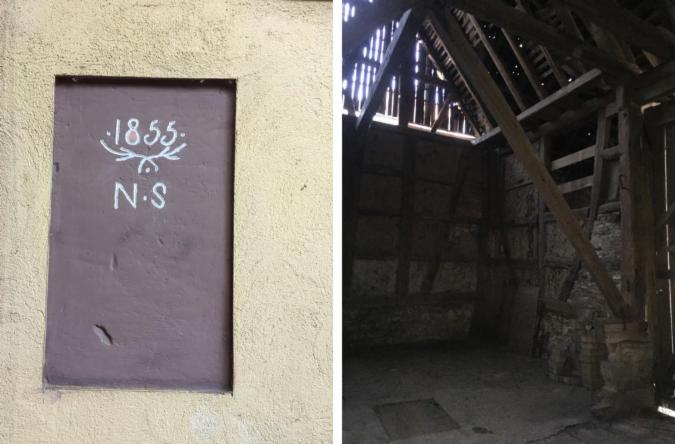 Die Initialen vom Wirten Nikolaus wurden links neben der Eingangstüre verewigt. Rechts oben: Scheune