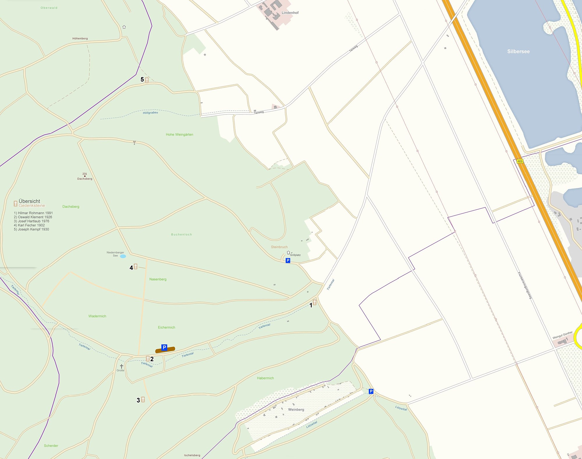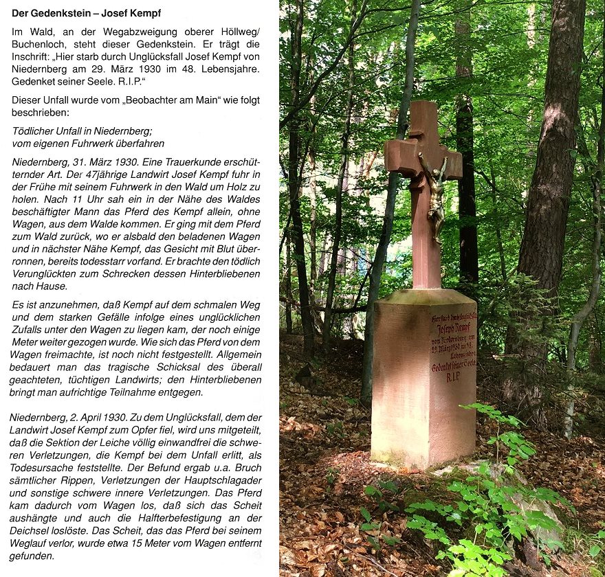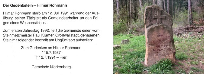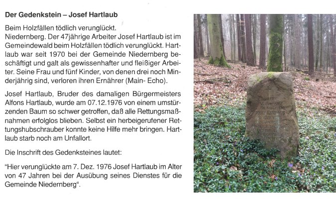 (in zeitlicher Reihenfolge. Bilder per Mausklick vergrößerbar)Übersichtskarte Niedernberger Wald mit den Standorten der Gedenksteine.