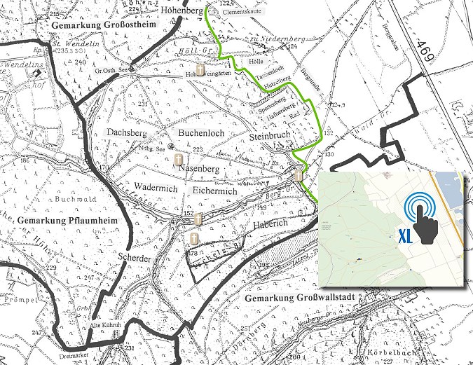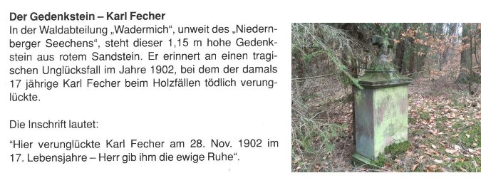 Der Gedenkstein Karl Fecher liegt unweit des Niedernberger Wald-Seechens (Übersichtskarte)
