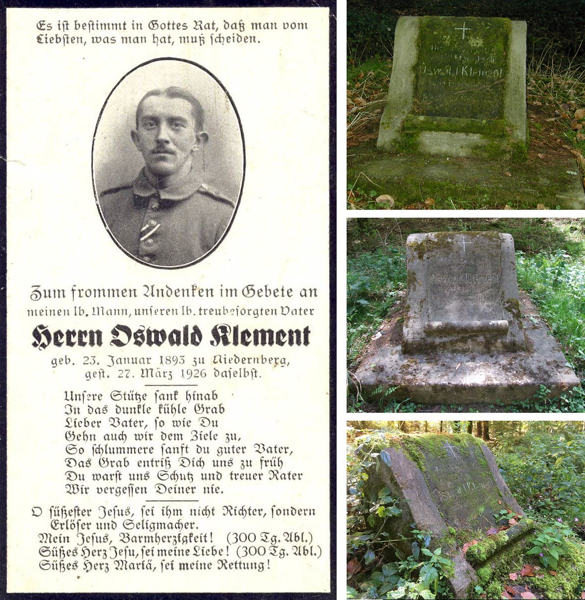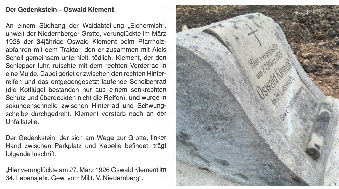 Der Gedenkstein Oswald Klement im Laufe der letzten Jahre: 2003, 2012, 2017 (v. o. n. u..) und neu restauriert in 2019: