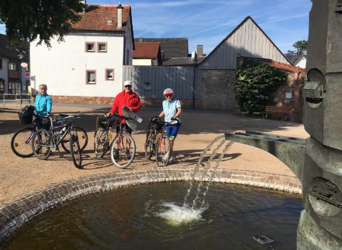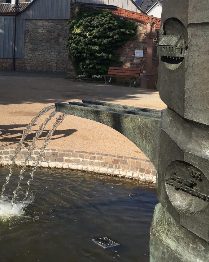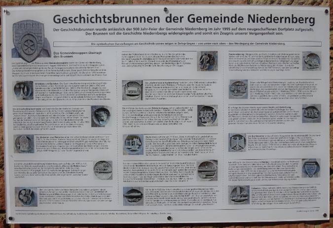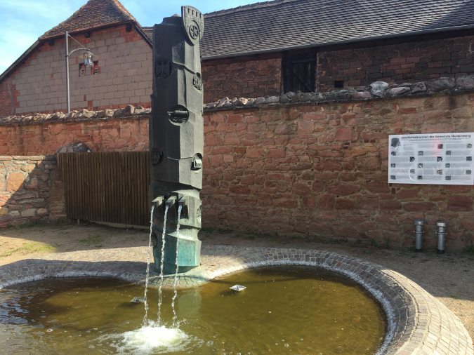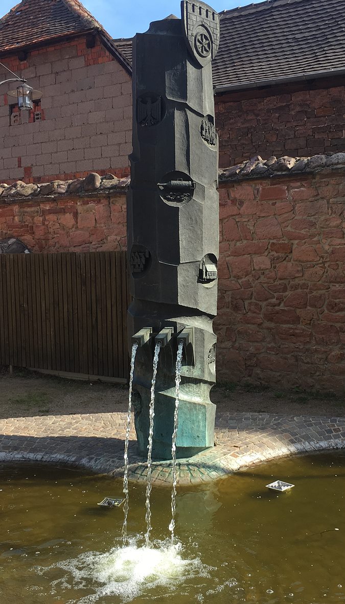 in 3D dargestellten Szenen auf der Brunnensäule spiegeln die Niedernberger Geschichte