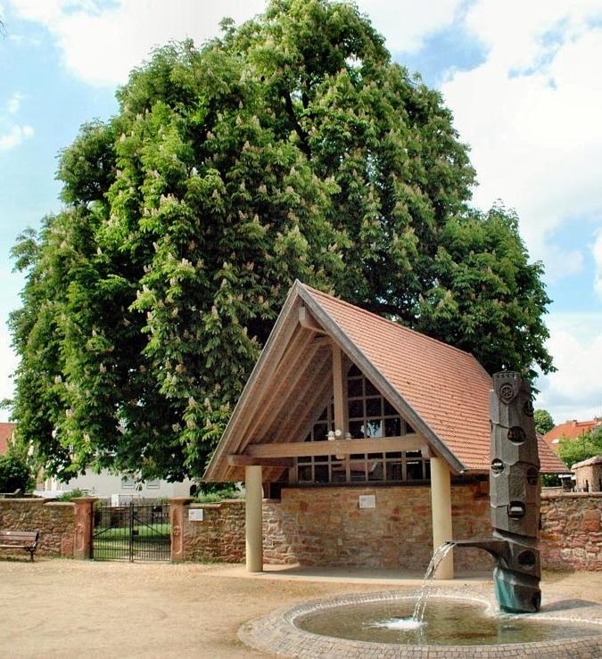 Der Geschichtsbrunnen auf dem Dorfplatz wurde am 2. Juli 1995 im