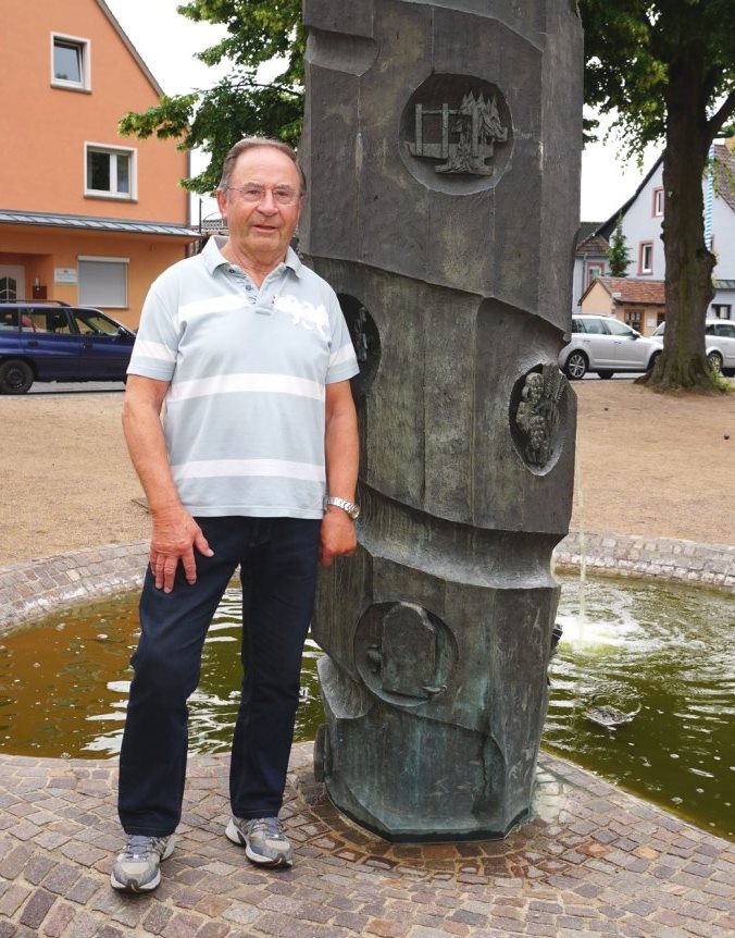Der Aschaffenburger Bildhauer Willibald Blum hat, gemeinsam mit Heimatpfleger Albert Wagner (Foto), die dargestellten Szenen aus unserer Geschichte ausgewählt. Gegossen wurde der Brunnenschaft von der Kunstgießerei Grundhöfer hier in Niedernberg.