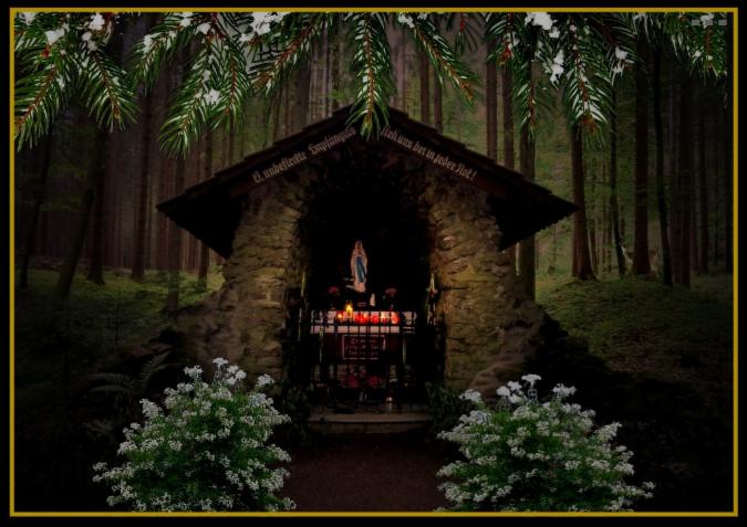 Die Mariengrotte steht im Naturpark Odenwald auf Niedernberger Gemarkung im Flurteil Scherder. Im Jahre 1894 wurde sie vom damaligen Krieger- und Veteranenverein aus Dankbarkeit über die glückliche Heimkehr aus dem Deutsch-Französischen Krieg 1870/1871 errichtet. Sie gilt als eine der ältesten Grotten dieser Art in unserer Umgebung. Sie wurde auch Lourdes Grotte genannt, da das Standbild der Lourdes-Muttergottes, umgeben von einem Kranz weißer Rosen und ihr zu Füßen kniend des Hirtenmädchen Bernadette, zu sehen waren. Die neue Madonna trägt diesen Kranz nicht mehr. Hier wird besonders der Verehrung Mariens gedacht, Prozessionen führen im Maimonat an dieses religiöse Zeugnis der Volksfrömmigkeit. Wie auch in Lourdes werden oft „Votivtafeln“ als Danke an Maria oder um ihre Fürbitte, an der Mauer befestigt. Nach der Auflösung des Vereins um 1930 ging die Grotte an die Gemeinde Niedernberg als Grundbesitzer über. Seither übernimmt diese die erforderlichen Restaurierungen und sorgt für ihre Betreuung.
