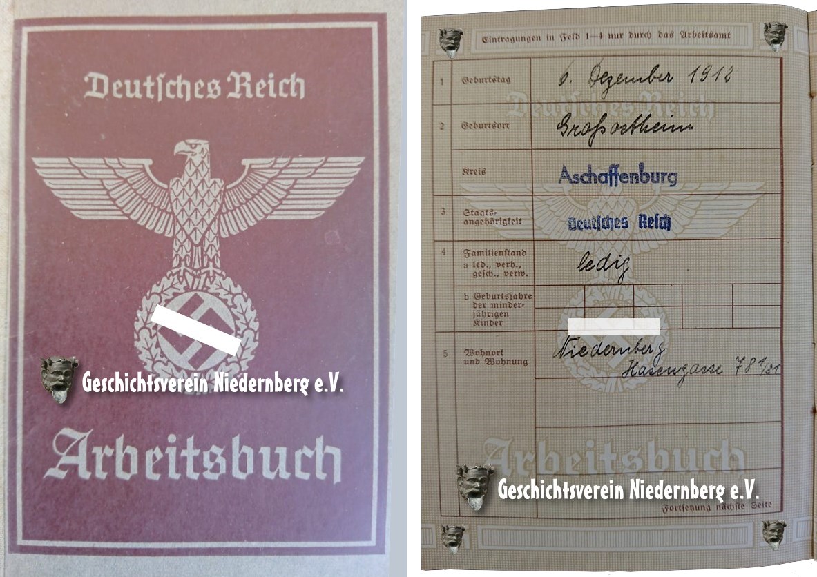 Im Reichs-Arbeitsbuch hinterlegte Anschrift: Niedernberg, Hasengasse 78.1/21 (heutige Fachrainstr. 19)