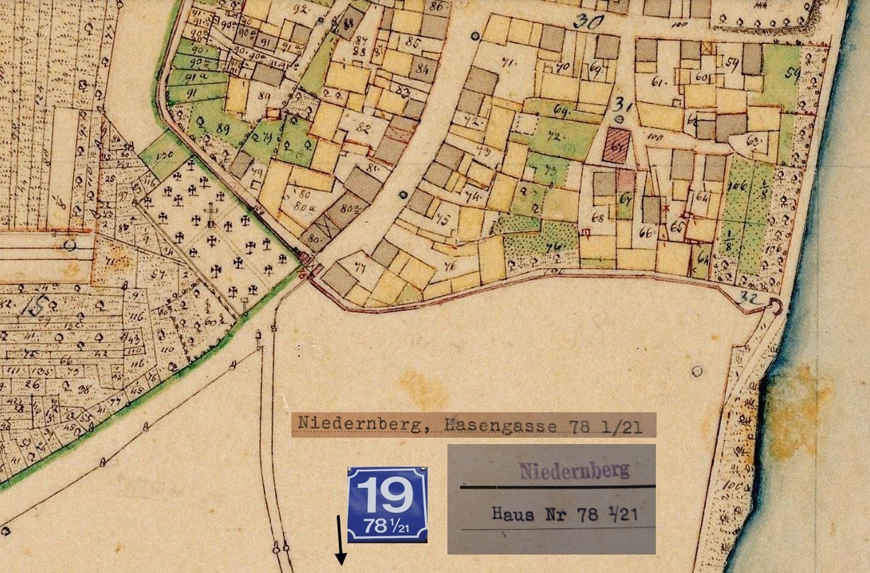 Hausnummern 78 mit einer zusätzlichen Bruchzahl. Die Nummern reichten bis zu 78.1/30. Gleiches Vorgehen in der außerhalb der Ortsmauern neu bebauten Schulstraße, im Waldweg, am Stadtweg usw.