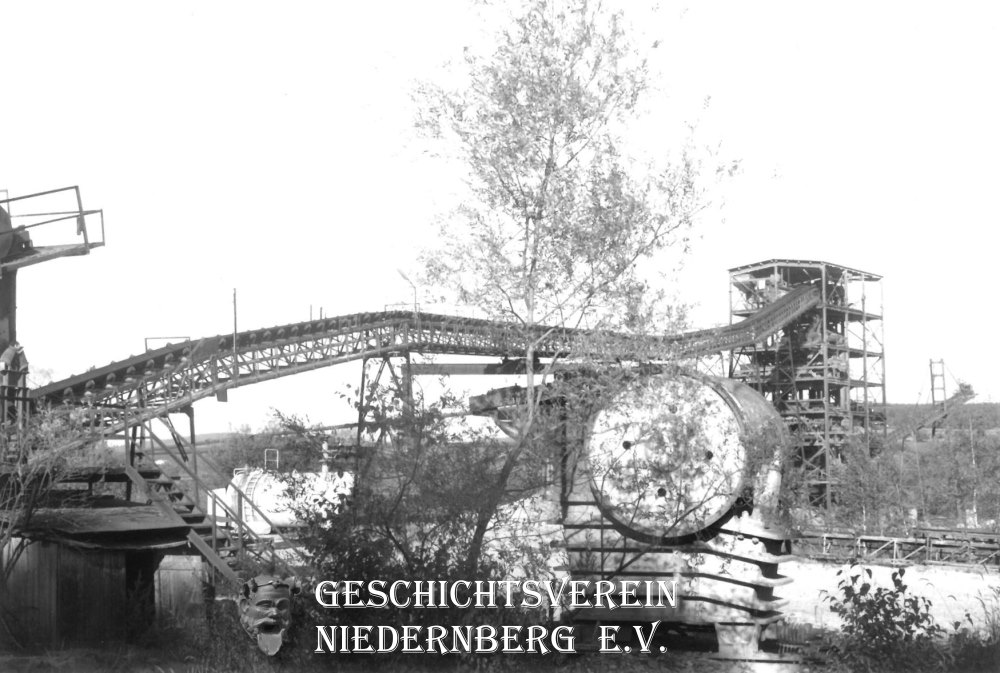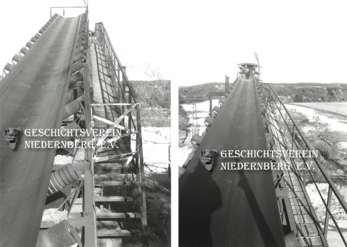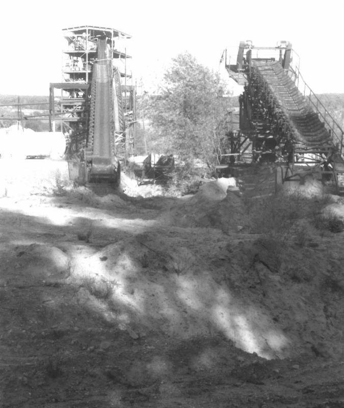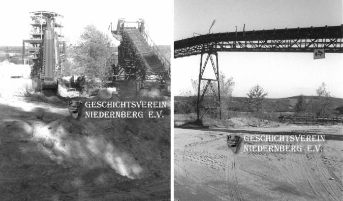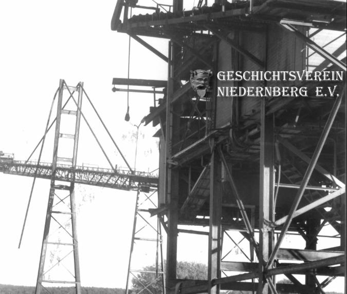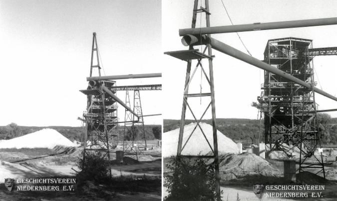 stehenden Turms mit den Förderbändern. Von diesem Turm aus lief ein Förderband