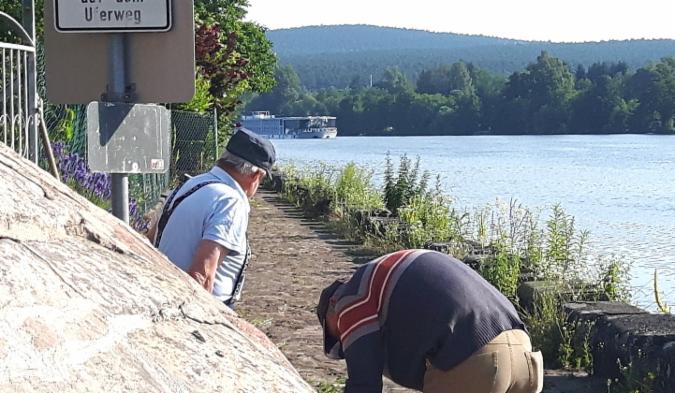 Rentnerbamd befreit den Uferweg immer wieder vom Unkrautbewuchs. Bilder von 2016 (Vesperpause) und 2017 (unten)