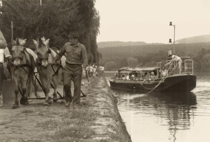 solcher "Pferde-Pfad". Ende des 19. Jahrhunderts lösten löste die Dampfkettenschleppschifffahrt die Leinreiter ab.