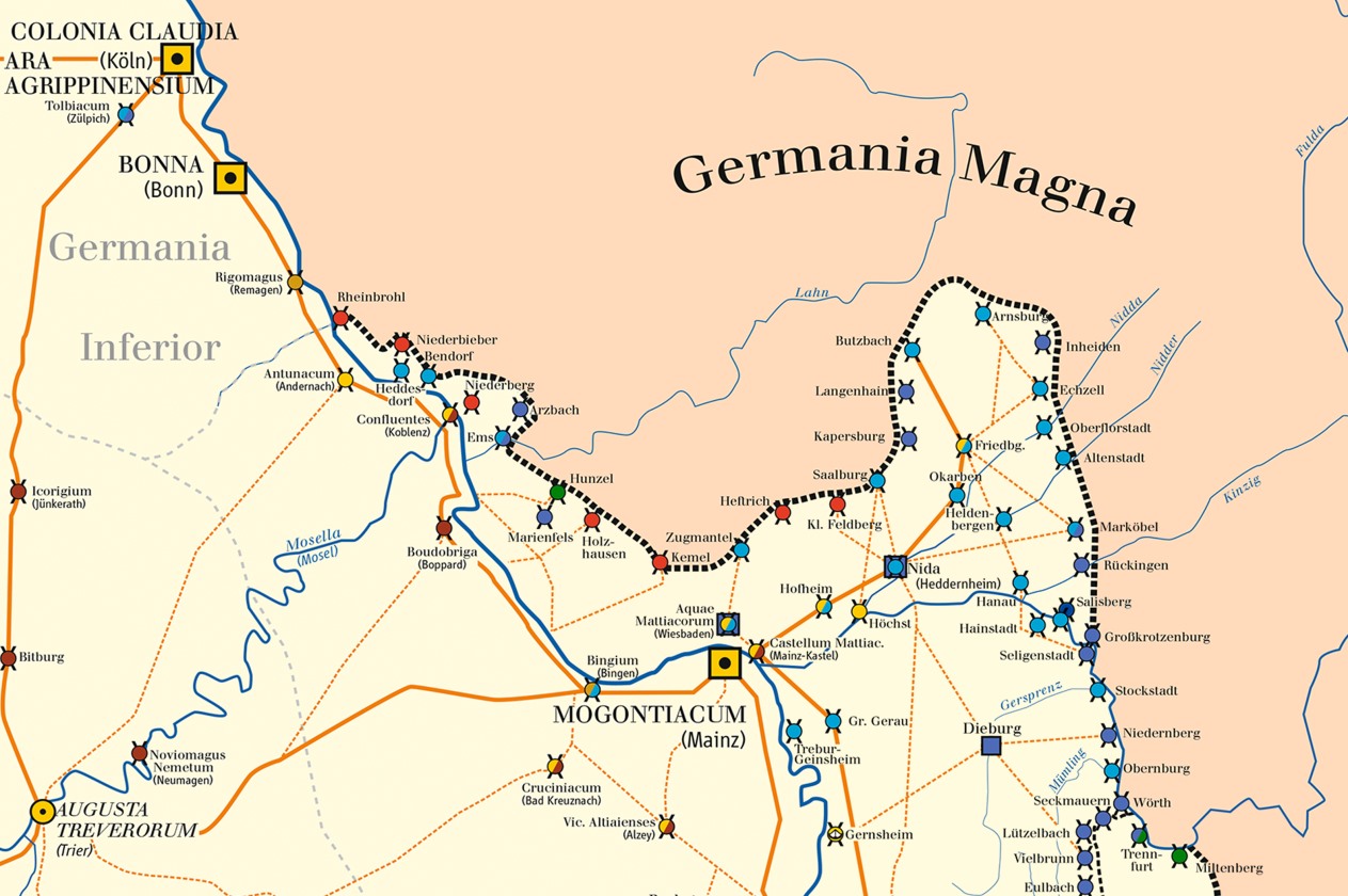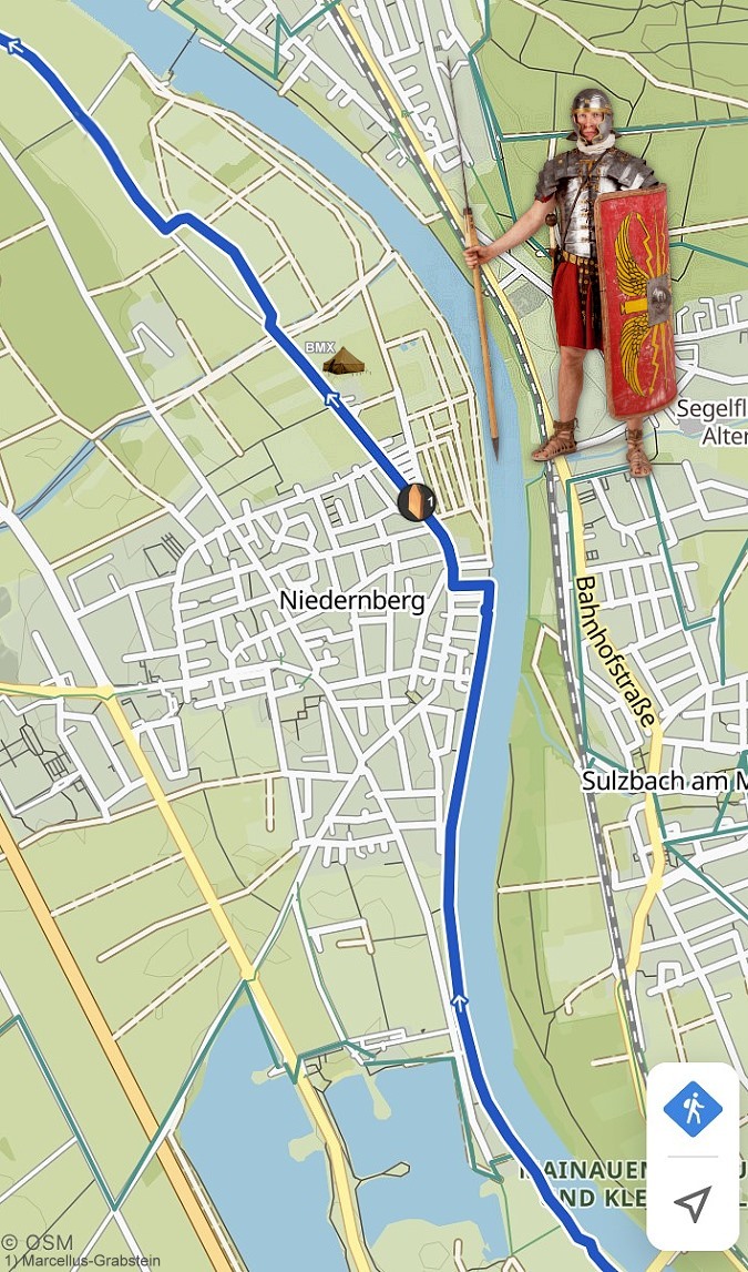 Regel mindestens 20-30 km pro Tag marschierte. Die 17. Etappe führt den "Nassen Limes" (auch "Mainlimes" genannt) entlang von Kleinheubach/Laudenbach über 25 km nach Niedernberg.