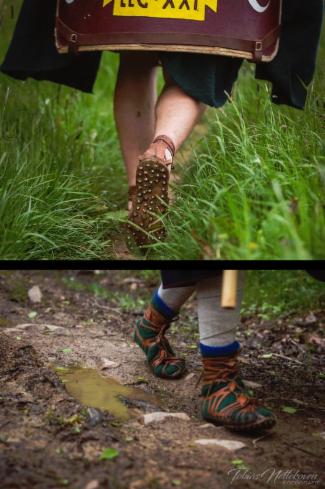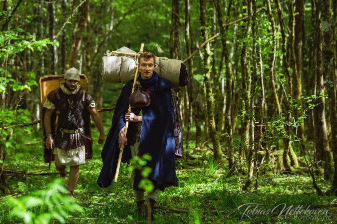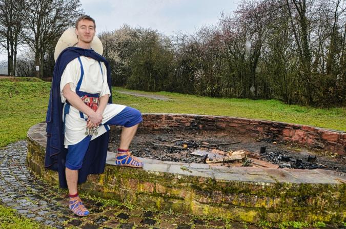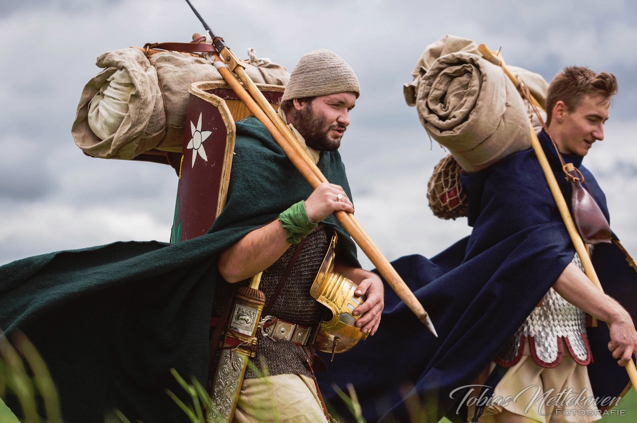 Marschausrüstung auf dem Rücken geschnallt hatte. Anstatt im authentischen Römerzelt-Nachtlager