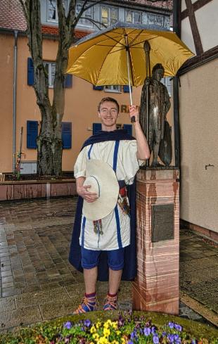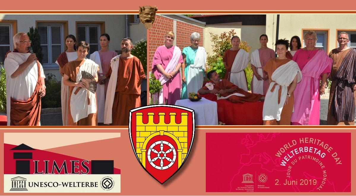 spontane Bereitstellung des Lagerplatzes, der Duschmöglichkeiten und einer abendlichen Verköstigung der Ligionäre. Ein offizieller Empfang der Gemeinde Niedernberg findet am frühen Freitag-Nachmittag durch den stellvertetenden Bürgermeister Volker Goebel (hier im Bild links zu sehen bei der Ansprache zum UNESCO Welterbetag 2019) statt.