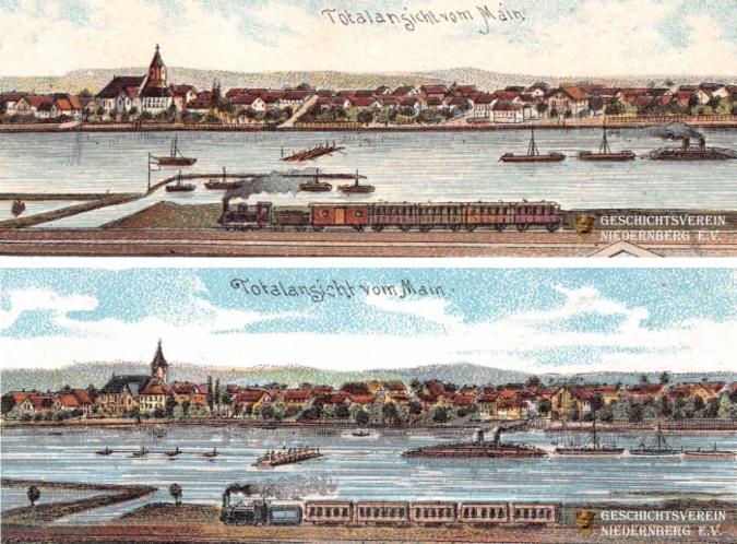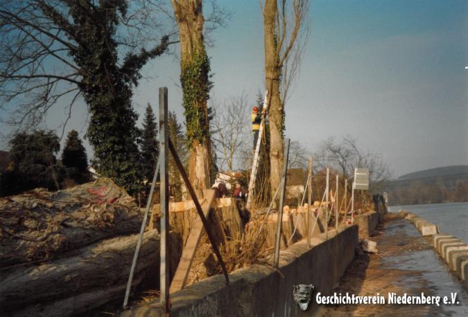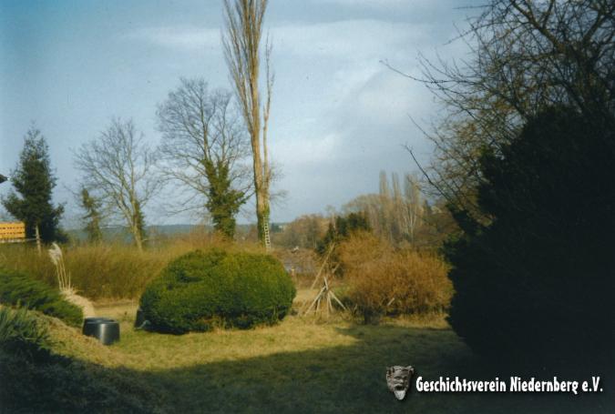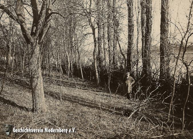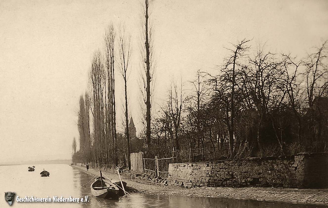 Pappeln am Uferweg im März 1927, vor der Flußregulierung 1928 (Schleusenbau). Unten Ansicht von einem Garten aus.