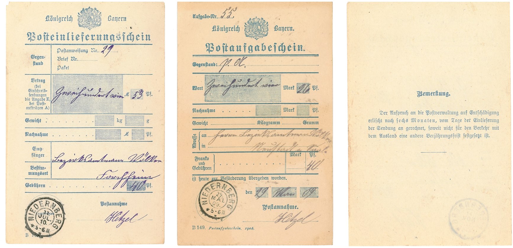verschickenden Briefe wurden im Hause des Postboten abgegeben. Von 1905 bis