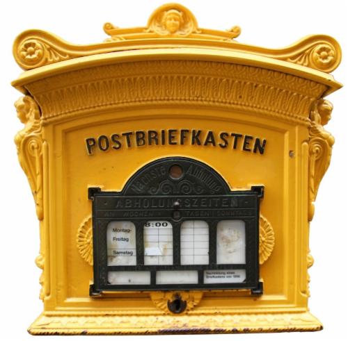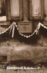 Briefkasten Anfang der 50er Jahre an der Poststelle Eduard Klement und ein Symbolbild für Niedernberger Postsachen