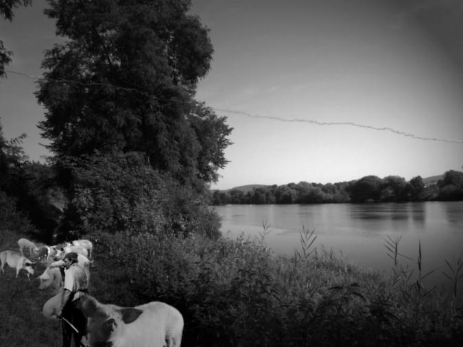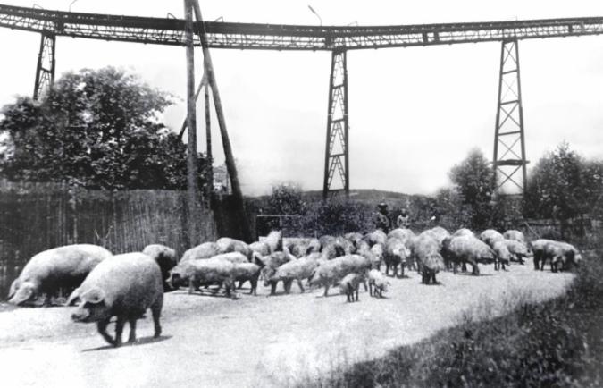 Schweine liefen dem Hirten hinter her. Nachmittags ging es umgekehrt. Auch