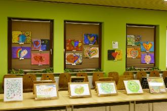 bunte Bilder, Salzteigfiguren, Moosgummi-Blumen, Karten, Briefe,