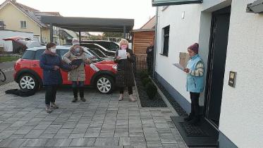 Es erfolgten im Herbst 2020 mehrfach Haustürbesuche mit kleinen Blumenpräsenten, siehe Main-Echo Bericht und Foto links. Im Advent 2020 wurden Lyn Werheim und Birgit Roth zu Haustürandachten von Ines Seidl mit der Gitarre begleitet. Sie überreichten Kerzen mit der Aufschrift „Licht der Hoffnung“. Siehe Main-Echo Bericht und Bild rechts.