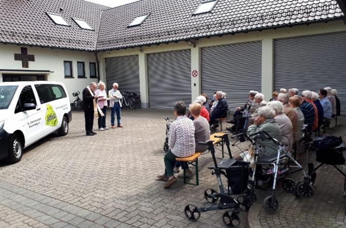 Mai 2018: Einweihung des Spätlese Busses durch Herrn Pfarrer Haas. Vor diesem Bus konnte man den Bus vom Pflegeheim Santa Isabella leihen. Aus versicherungsrechtlichen Gründen wa dies jedoch nicht mehr möglich.