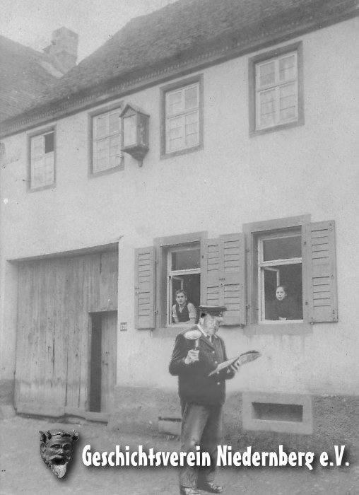 Verlautbarung im Sudetenland um 1940: Nachdem die Leute auf dem Dorfplatz zusammengetrommelt wurden, las der Gemeindetrommler die Bekanntmachung vor. Bild rechts: In Niedernberg wurden vor Einführung des Amtsblattes (Ersterscheinung