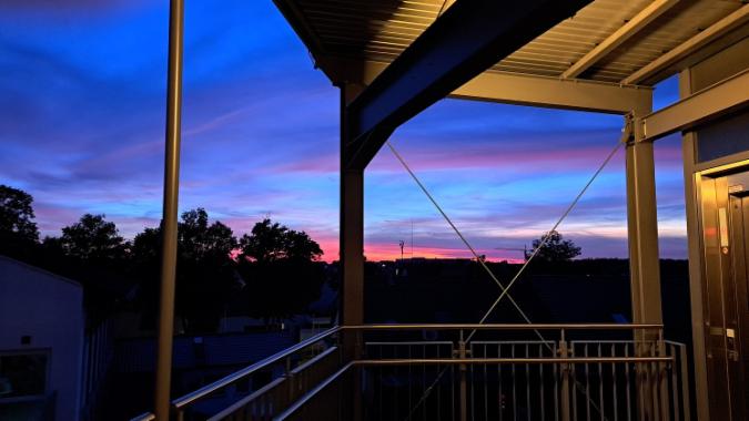 Treppenaufstieg u. Fahrstuhl. Die obere Plattform bietet uns einen schönen Freisitz "über den Dächern von Niedernberg".